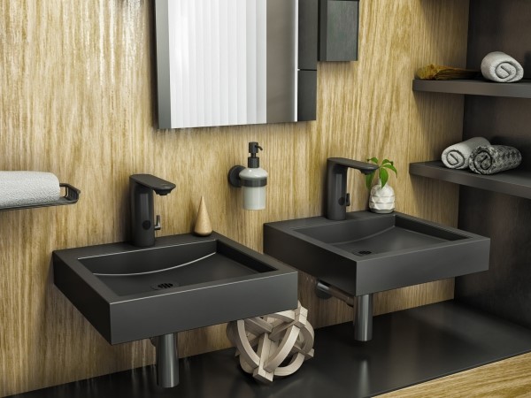 Väikses vannitoas tuleb unustada vann ja ehita dušinurk. Valge vannituba on kui puhas peen lõuend mustale või värvilisele sanitaarkeraamikale, -tehnikale ja aksessuaaridele. Kui kunstiliseks aktsendiks on mustvalge graafiline plaat, siis võiksid ka valamu ja segisti olla mustad. Näiteks Sanela musta värvi roostevabast terasest valamu, kuhu sobib hästi ka sama tooni valamusegisti Sanela. Musta sanitaarkeraamika juurde tasub valida musta värvi tarvikud – riiulid, seebialus ja erinevat sorti nagid. Kõik need on valmistatud kvaliteetsest roostevabast terasest.