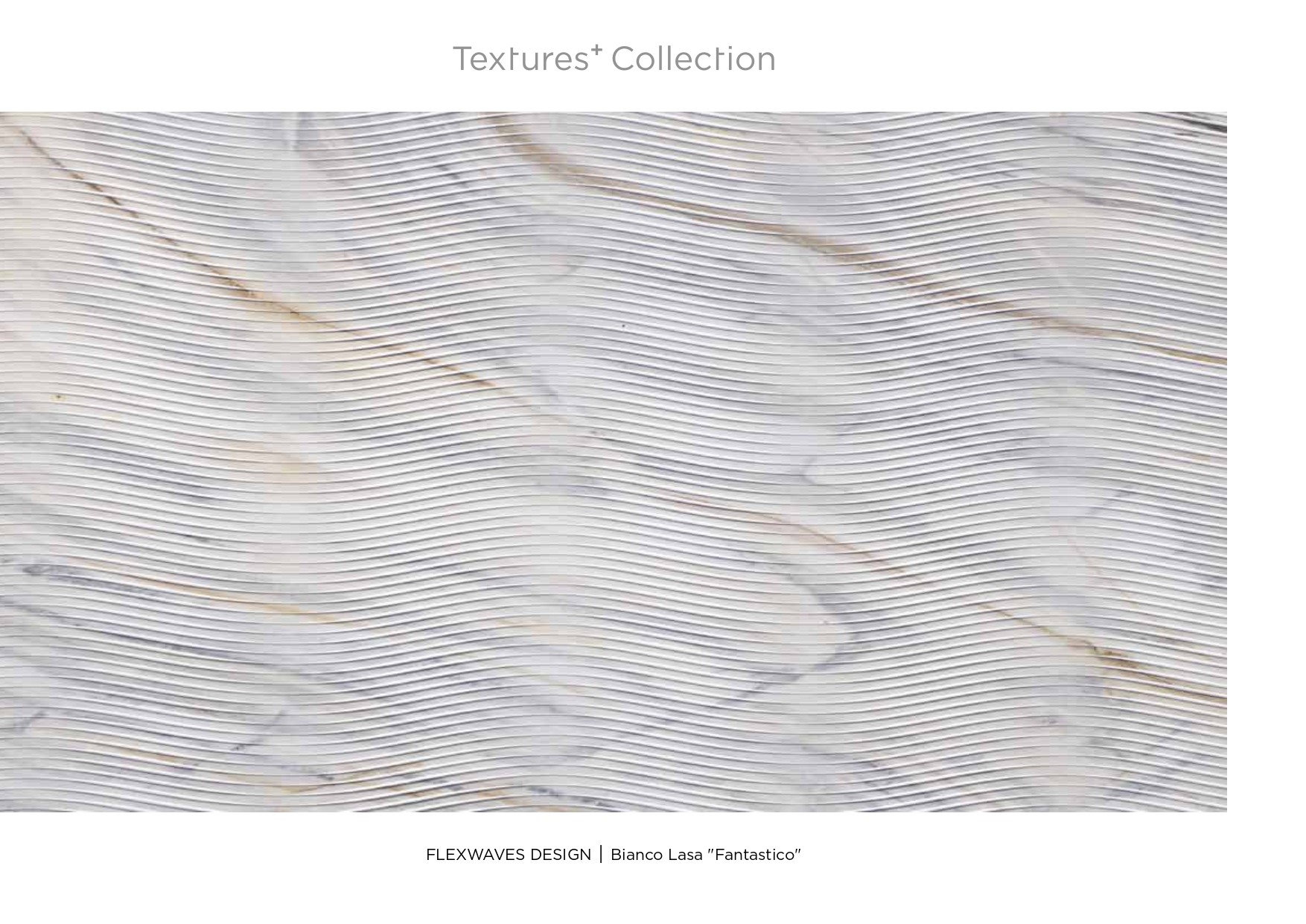 Textures+ kollektsioon kasutab innovatiivseid tehnoloogiaid ja töötlemisprotsesse, et luua looduskivi pinnale kolmemõõtmelisi tekstuure ja reljeefe, mida on võimalik tajuda ka füüsilise puudutuse kaudu. Tulemus meenutab geomeetriliselt modelleeritud pinda või reljeefset kangast.